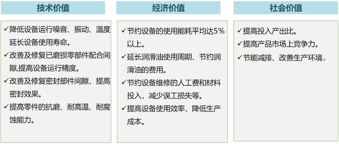 金固金属摩损表面自修复智能材料是一项优异的金属表面工程领域新技术。将产品加入机械设备的润滑系统中,修复材料与磨损金属表面发生力化学作用,自动修复摩擦副磨损部位,从而改善建材加工设备由于机械磨损出现生产效率低、能耗高、稳定性差等问题。
